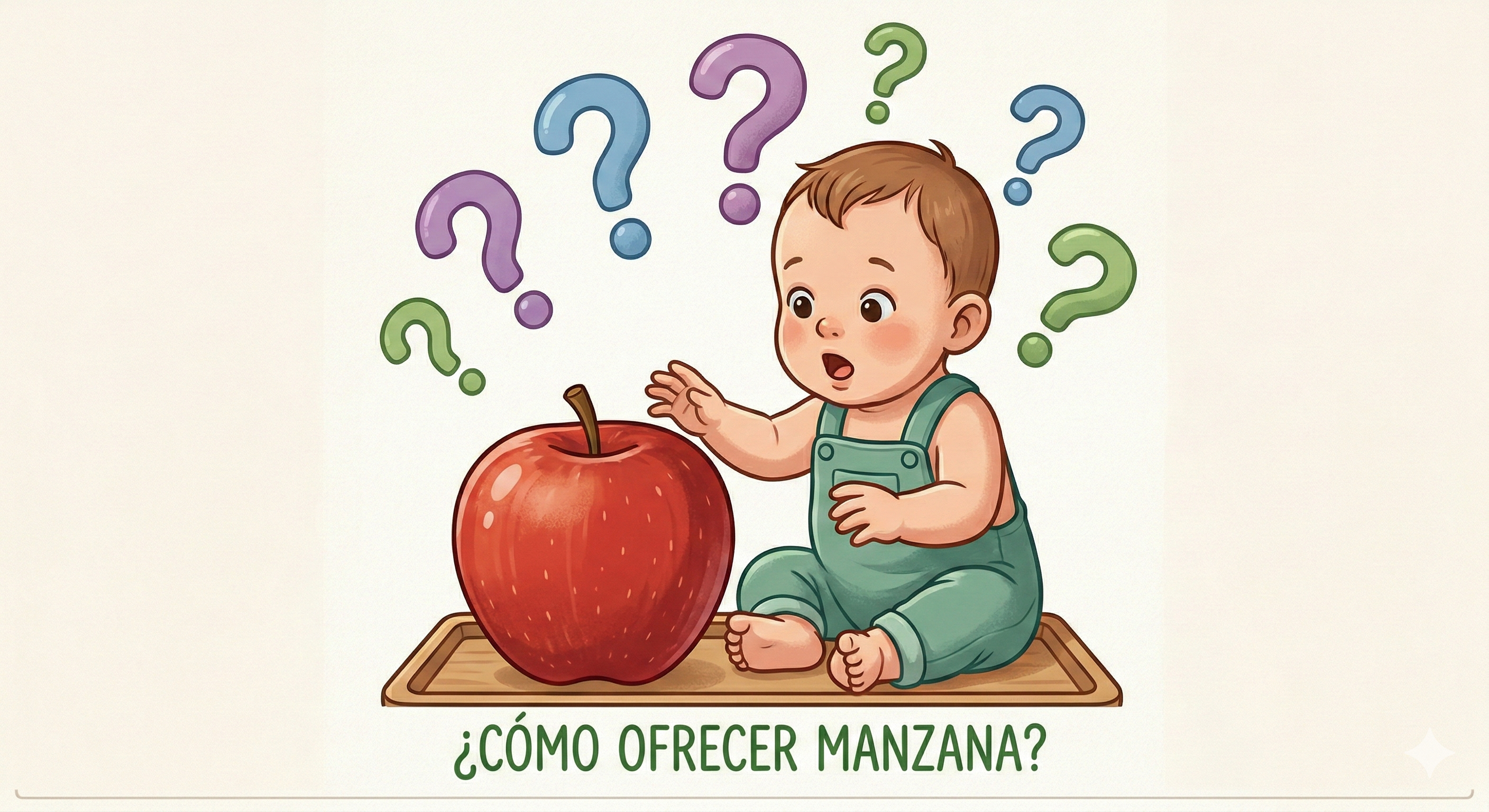 Siempre decimos que hay que ofrecer la fruta madura cuando ofrecemos sólidos, pero en el caso de la manzana no es así por que aunque esté madura sigue estando dura, entonces, ¿cómo se la puedo ofrecer a mi bebé?